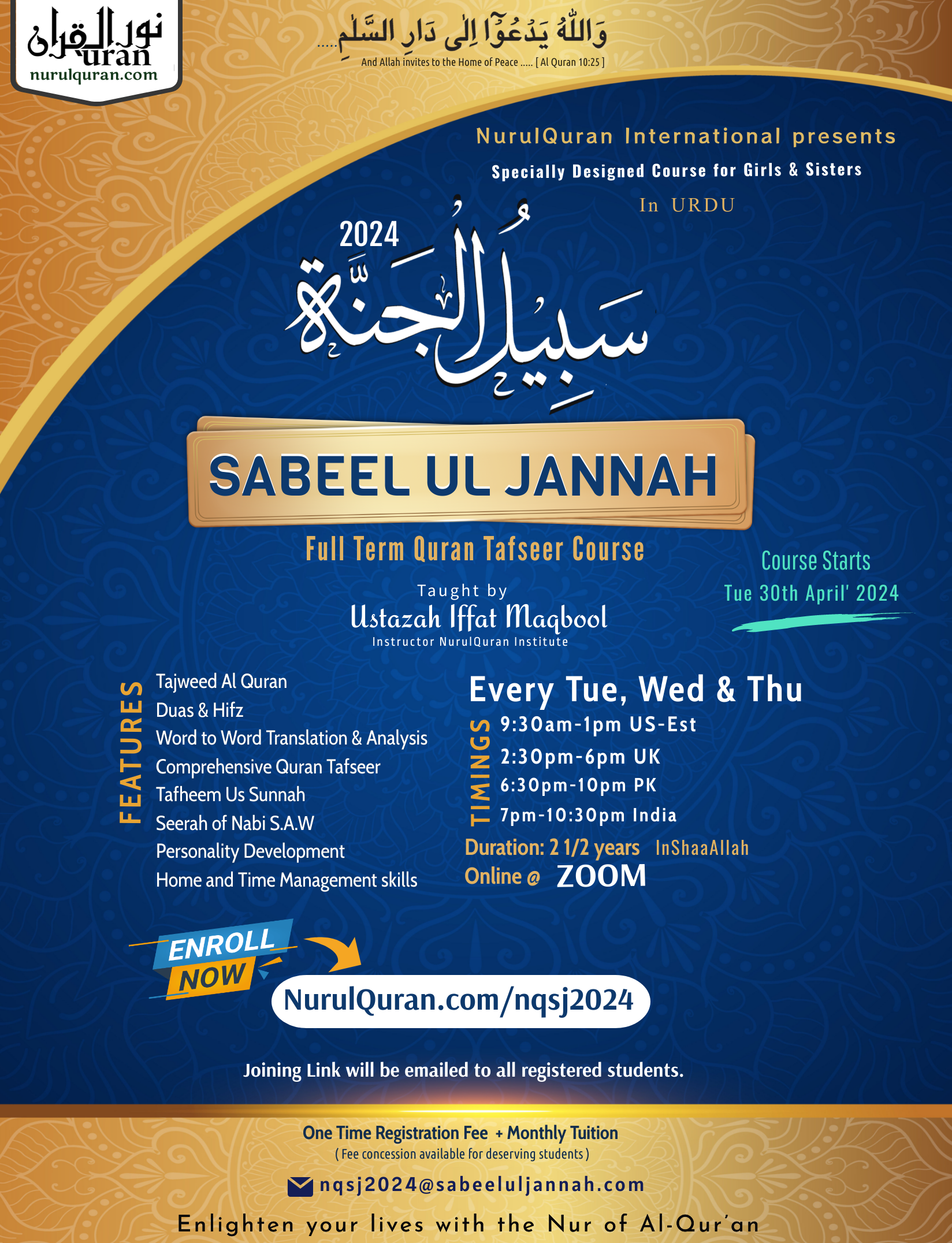 Note: Once Registration Form is filled, you will receive a confirmation email. Check you inbox and follow the steps to complete admission in Sabeel Ul Jannah 2024 course.