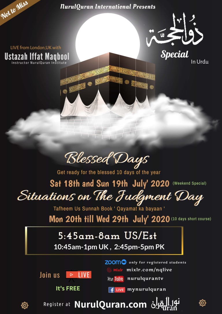 Medium: Zoom ( Joining link will be posted in All NurulQuran Course Student's Groups ),