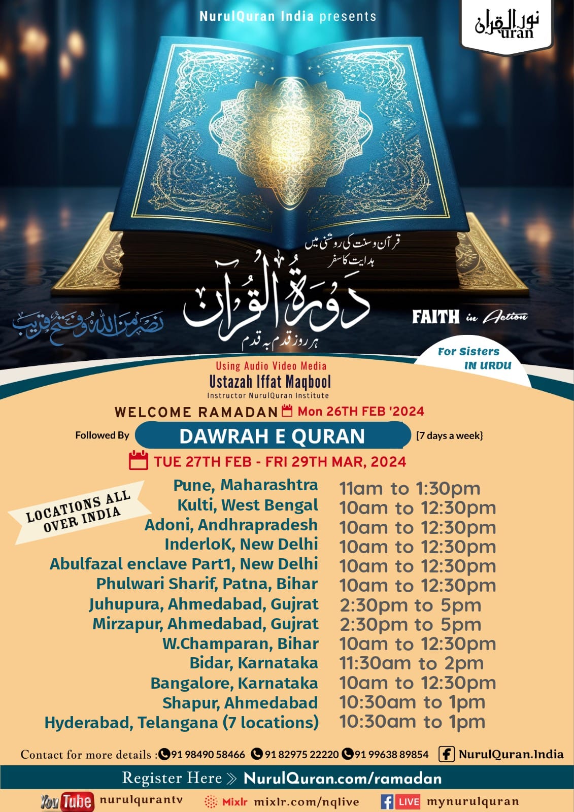 NurulQuran “DAWRAH E QURAN” 2024 at Different Locations In INDIA