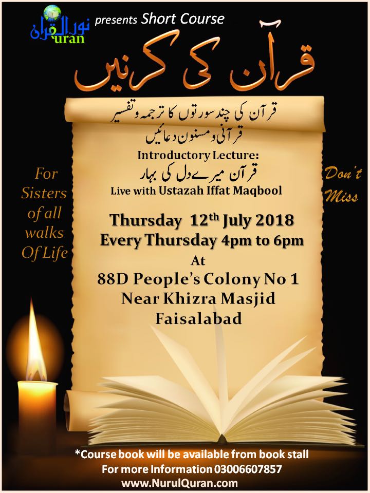A short course of selected Ayahs of Quran, translation and explanation by Ustazah Iffat Maqbool live from Faisalabad, Pakistan