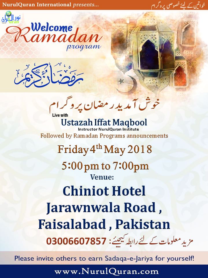 ” Join for Welcome Ramadan Program.. Live with Ustazah ji..Grab this opportunity and open the door of blessings..”