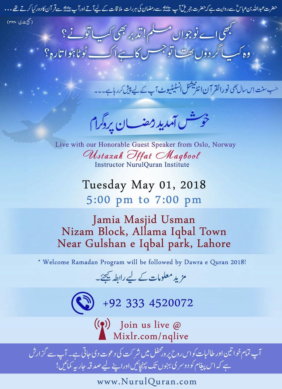 “Series of Live Welcome Ramadan from Lahore PK program followed by DQ2018 In Shaa Allah..”