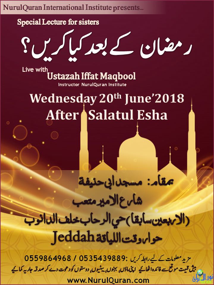 Special Lecture live by Ustazah Iffat Maqbool on “What to do after Ramadan?”, from Jeddah