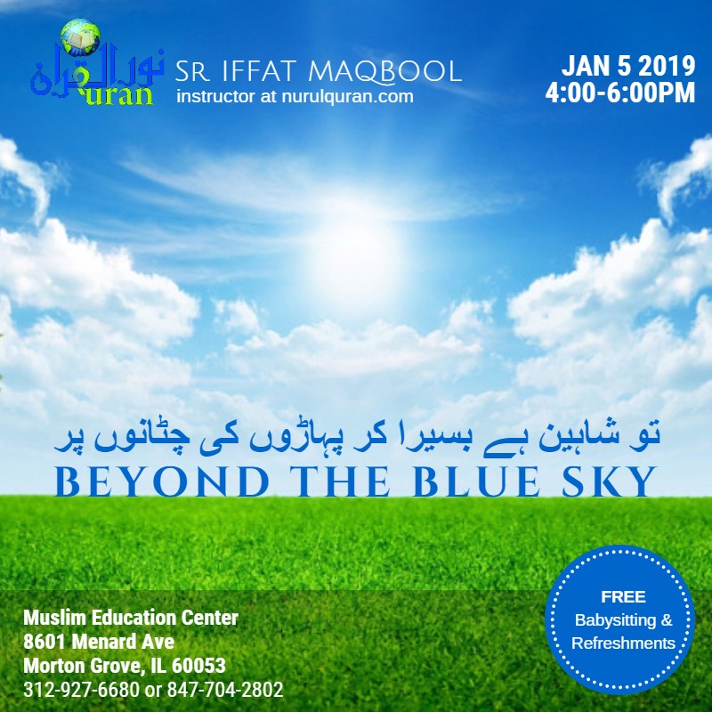 Beyond the Blue Sky !!! Featured January 5, 2019 @ 3:00 PM - 5:00 PM Muslim Education Center 8601 Menard Ave, Morton Grove, IL, United States