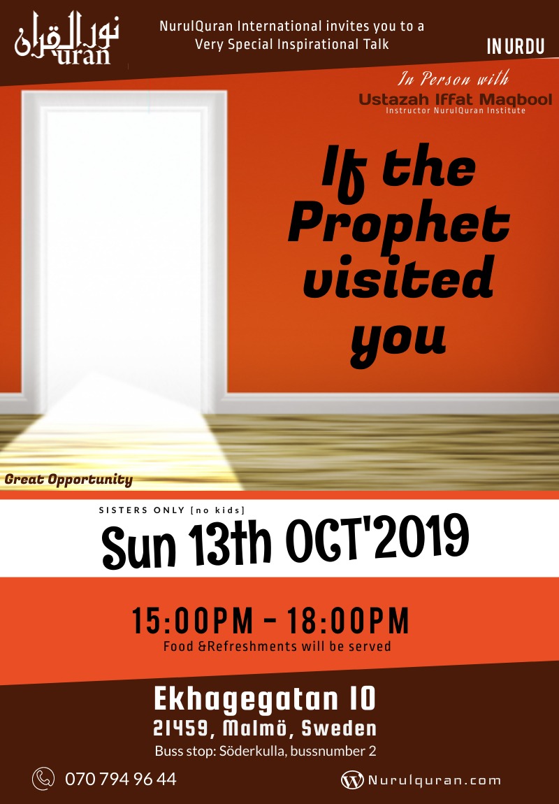 If the Propher (PBUH) visited you !! Featured October 13, 2019 @ 1:00 PM - 4:00 PM Ekhagegatan 10 2149, Malmo, Sweden