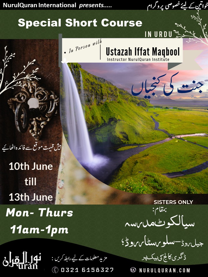 Jannat ki Kunjiyan !! Featured June 10, 2019 @ 9:00 AM - June 13, 2019 @ 11:00 AM Sialkot Madrasa Jail Road, Silver Star Road, Sialkot, Pakistan