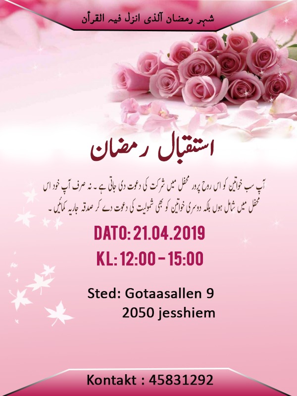 Welcome Ramadan !! Featured April 21, 2019 @ 10:00 AM - 1:00 PM Sted Gotaasallen 9, 2050 Jesshiem, Oslo, Norway