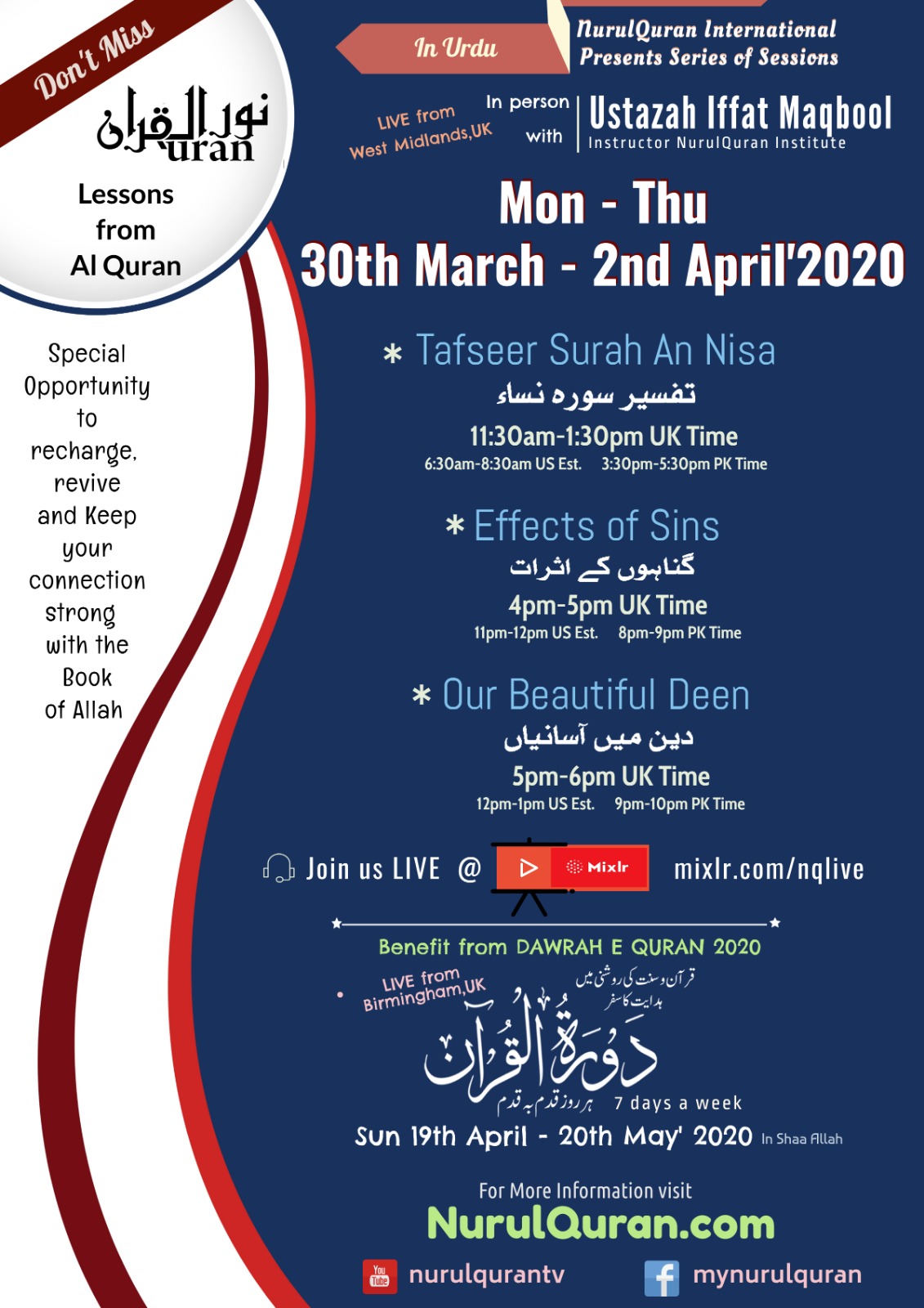 http://Mixlr.com/nqlive http://youtube.com/nurulqurantv