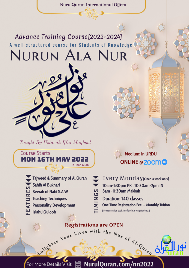 Note: Once Registration Form is filled, you will receive a confirmation email. Check you inbox and follow the steps to complete admission in NurunAlaNur 2022 course.