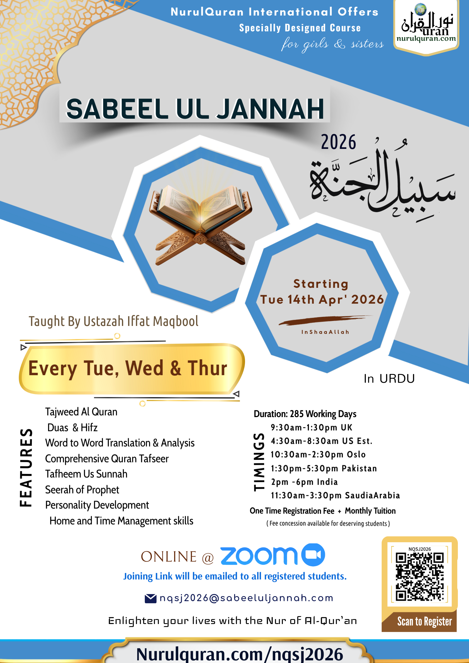 Note: Once Registration Form is filled, you will receive a confirmation email. Check you inbox and follow the steps to complete admission in Sabeel Ul Jannah 2026 course.