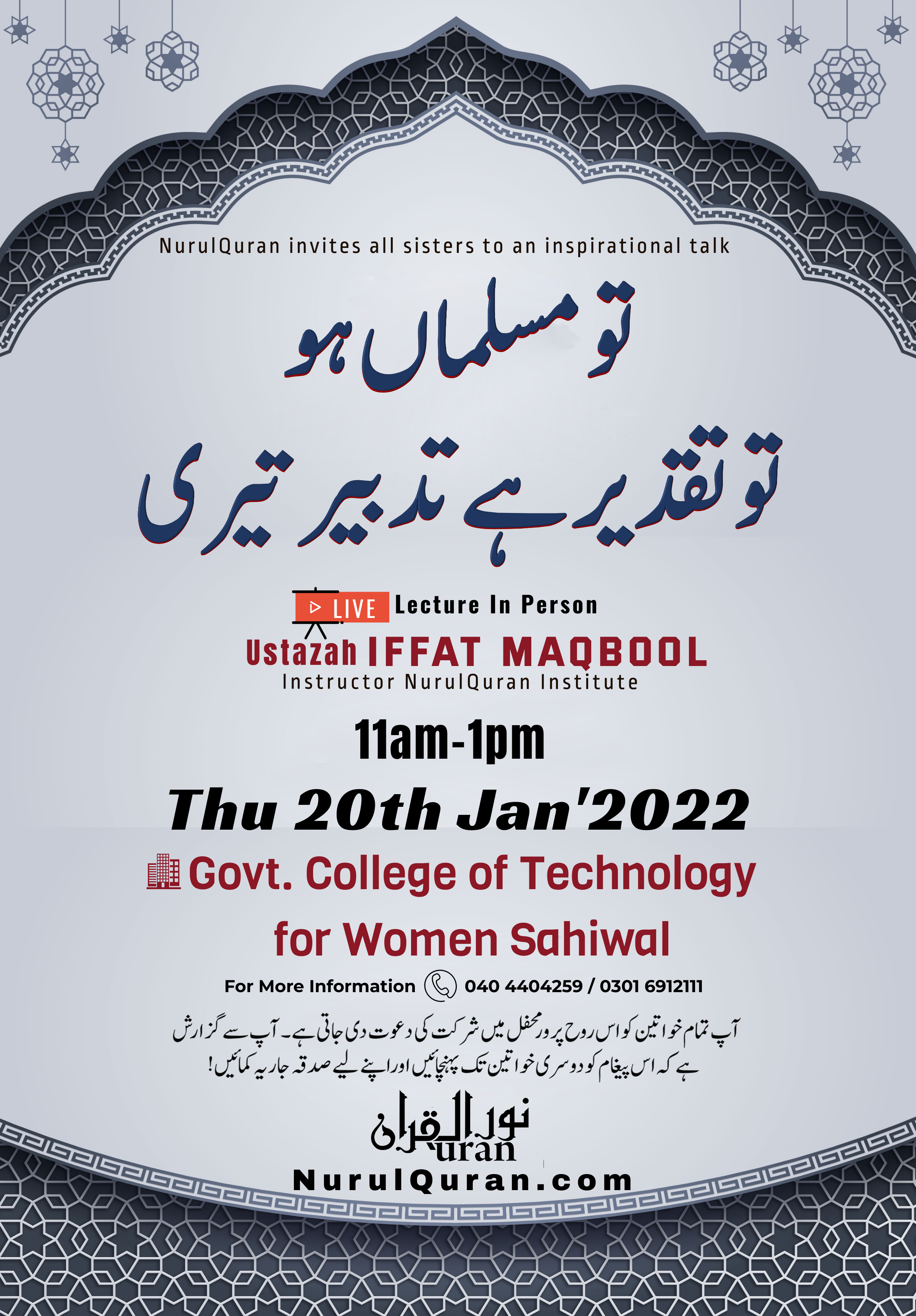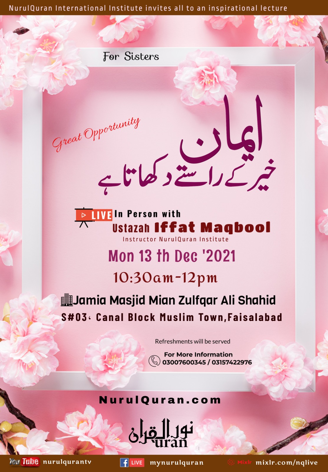 *~* Sat 11th Dec'2021@Masjid Usman Allama Iqbal Town Lahore *~*