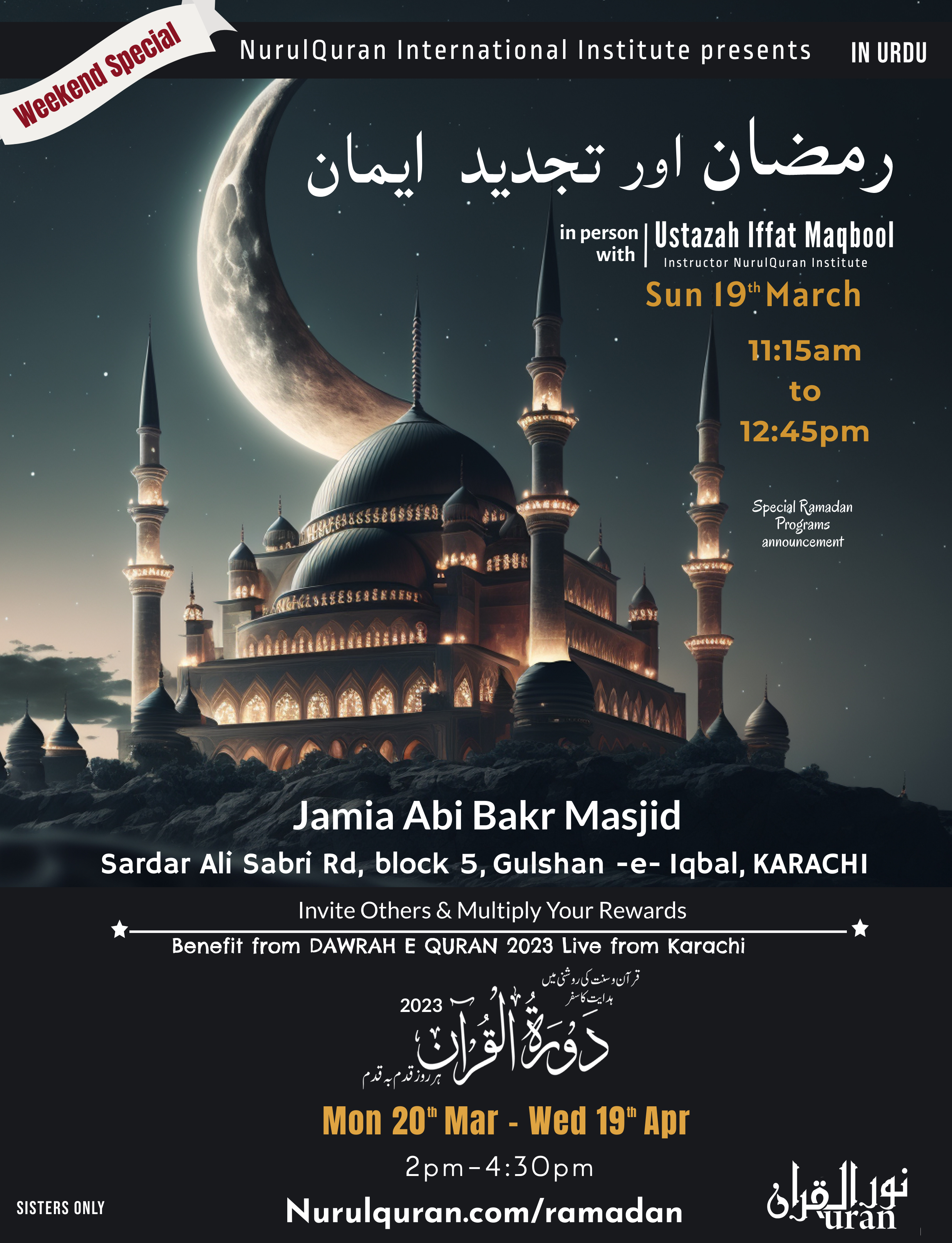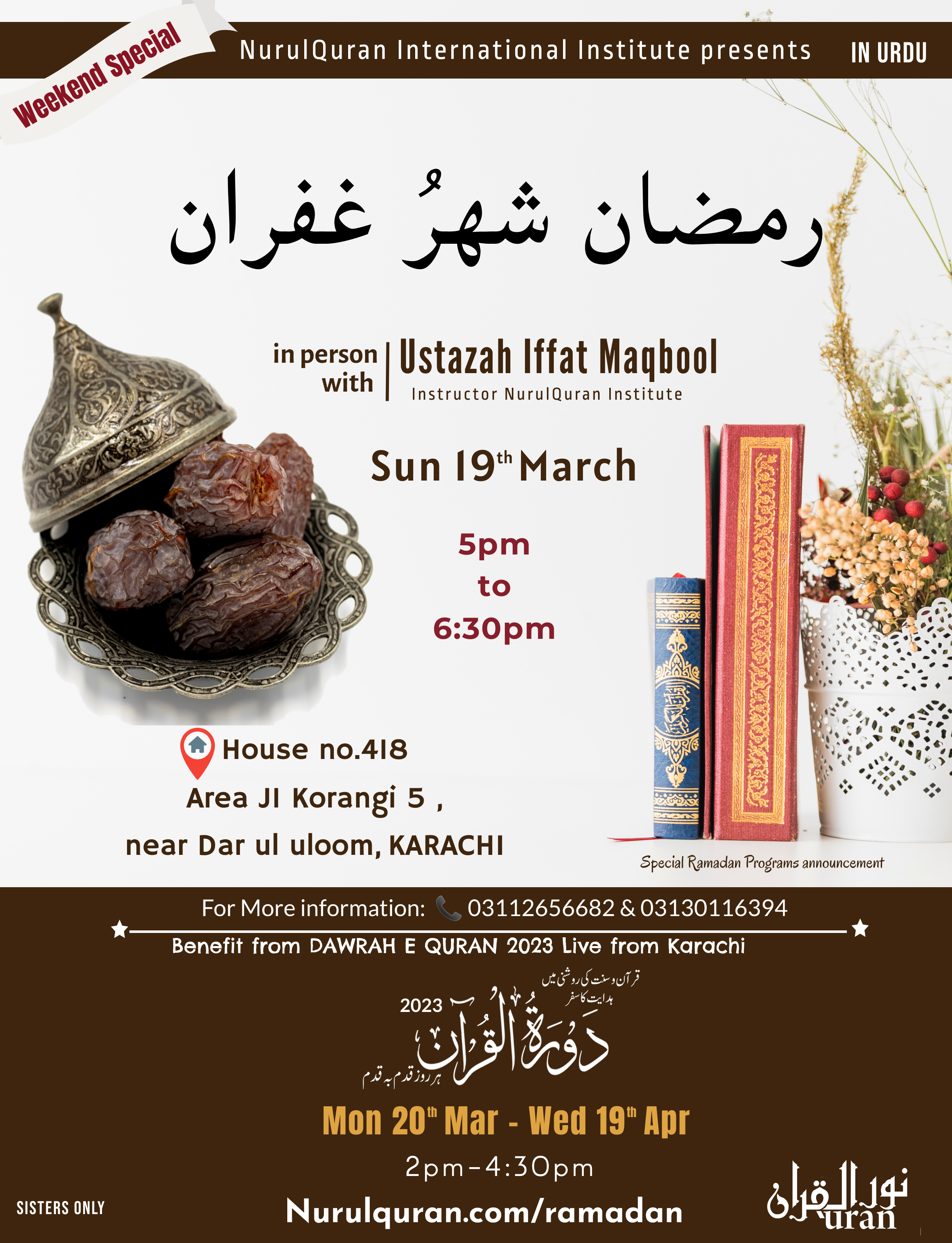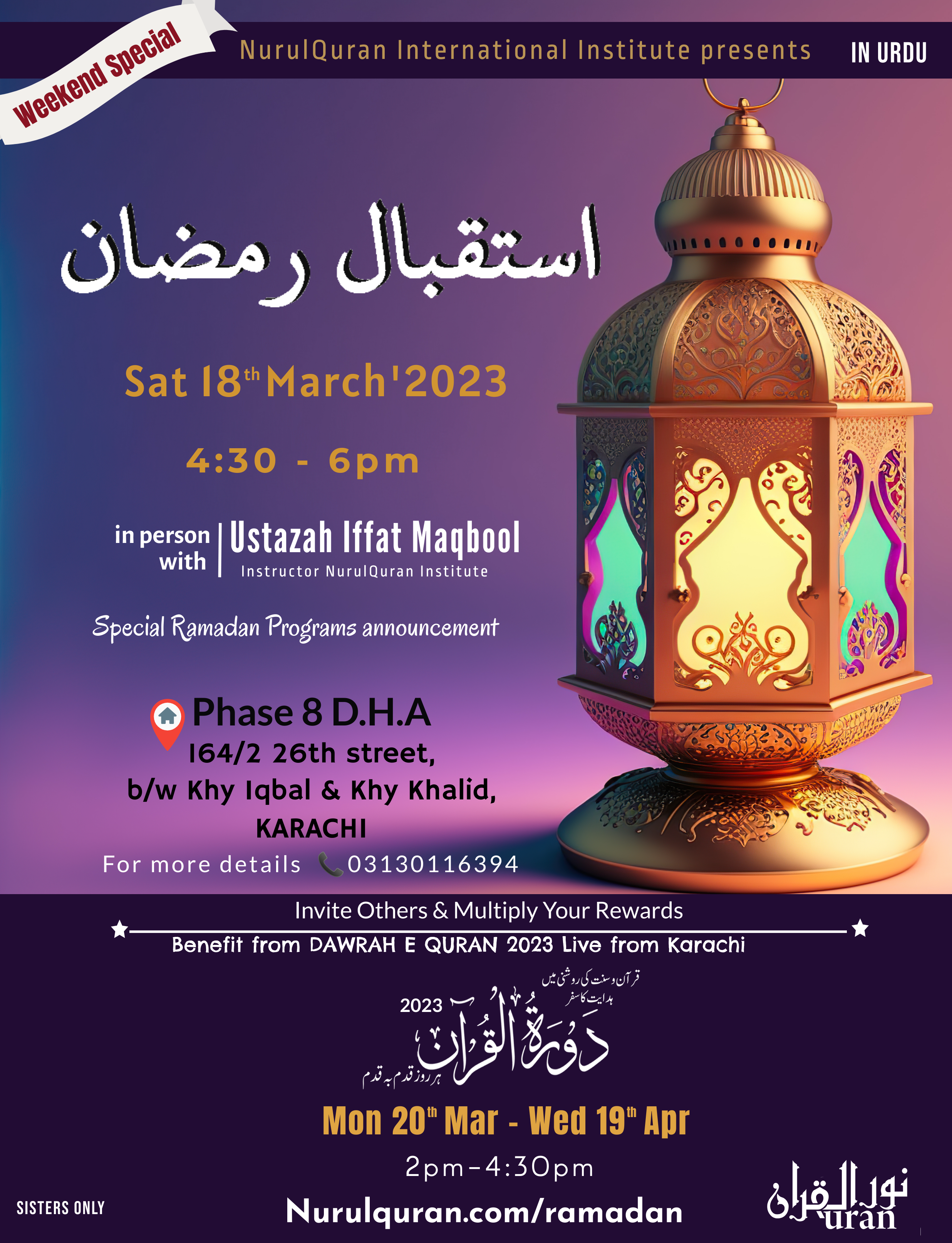 13th March & Onwards- Karachi Prep Ramadan & DawraheQuran
