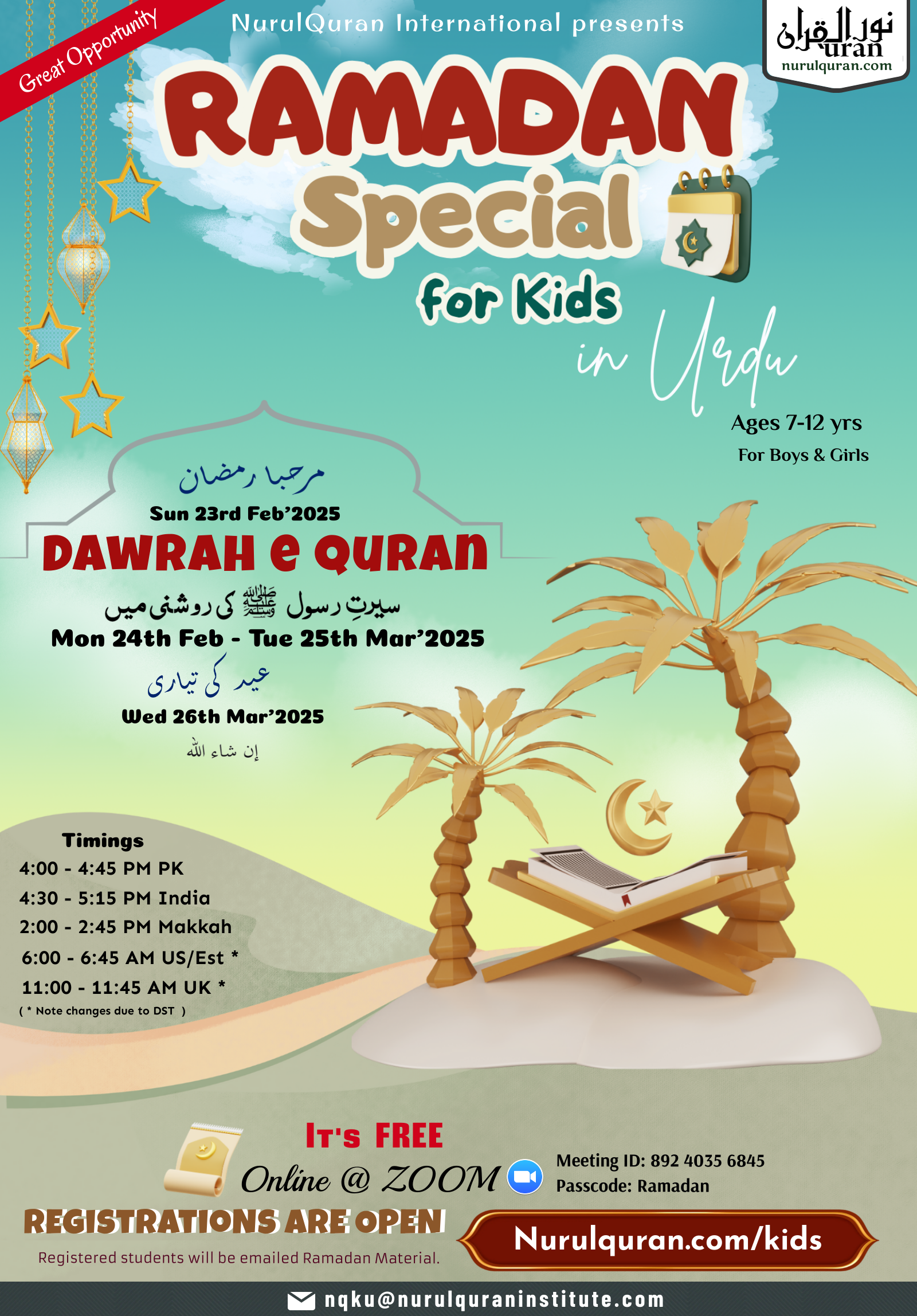 Registration Form Kids Dawrah e Quran 2025 ( in URDU )